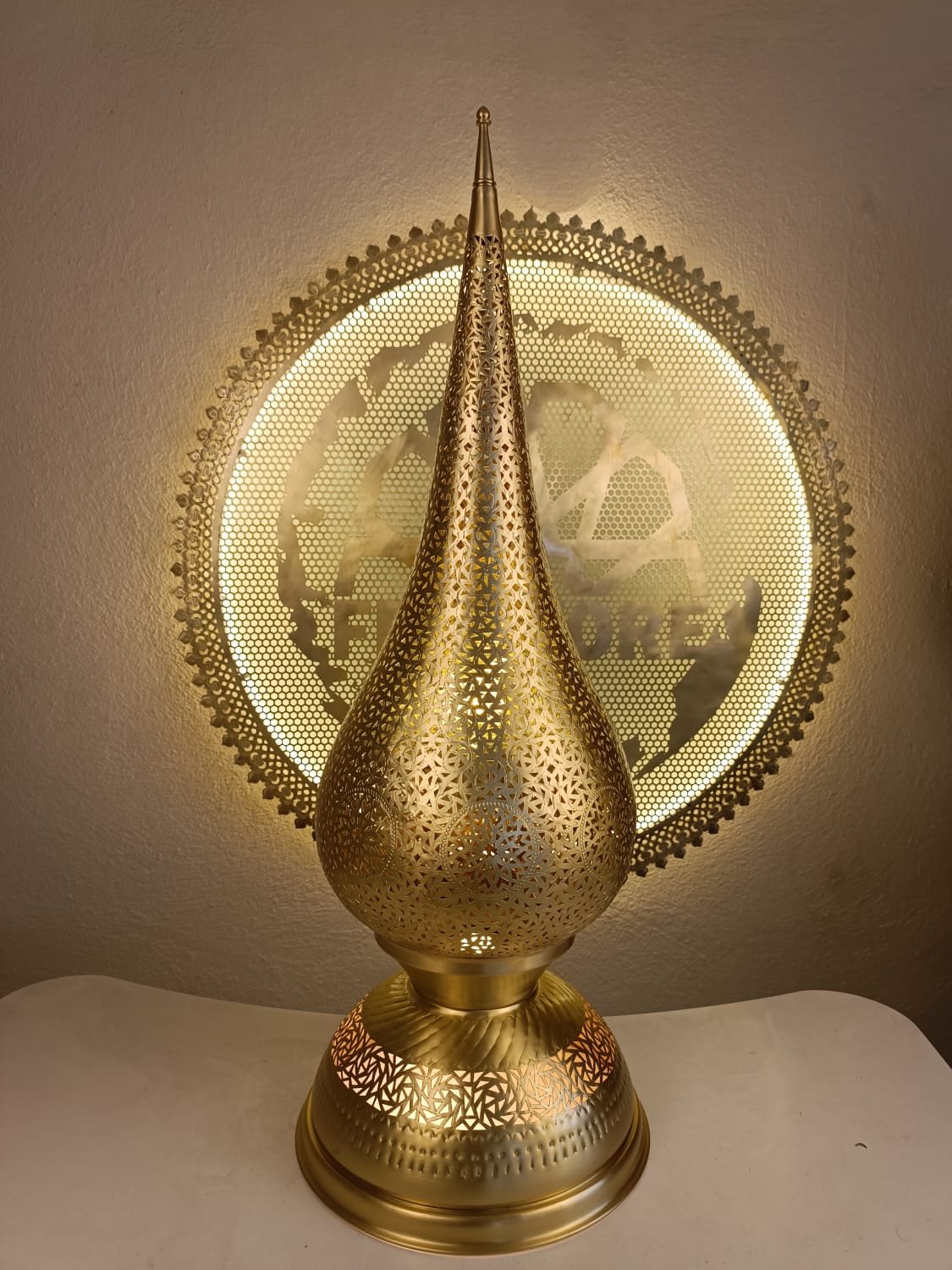 Avec sa hauteur de 80 cm et son design artistique, elle diffuse une lumière chaleureuse ornée de motifs lumineux qui créent une atmosphère orientale élégante et apaisante.