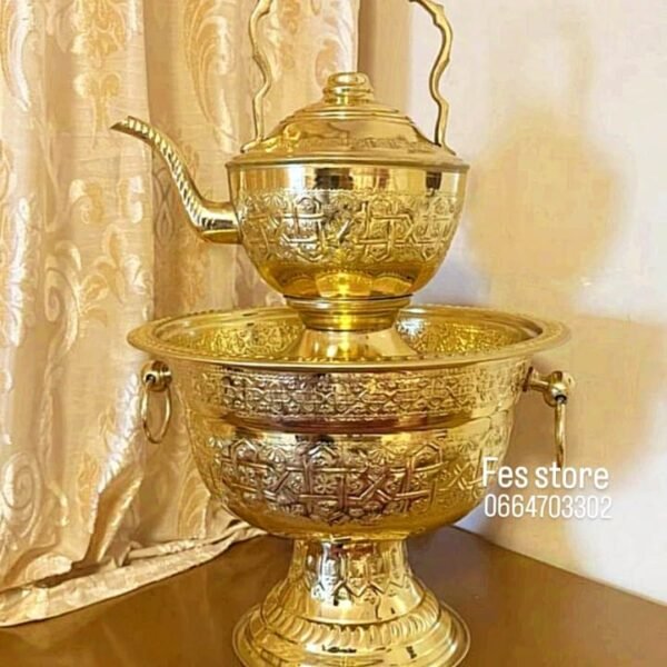 > Une théière qui reflète l’art du savoir-faire marocain avec une touche de prestige.