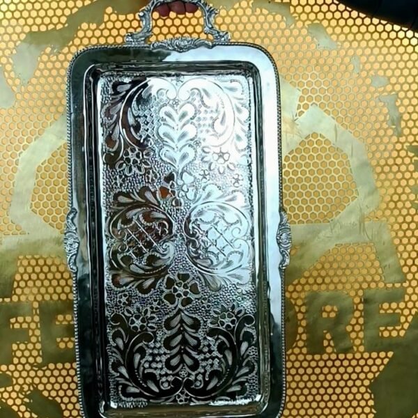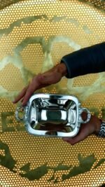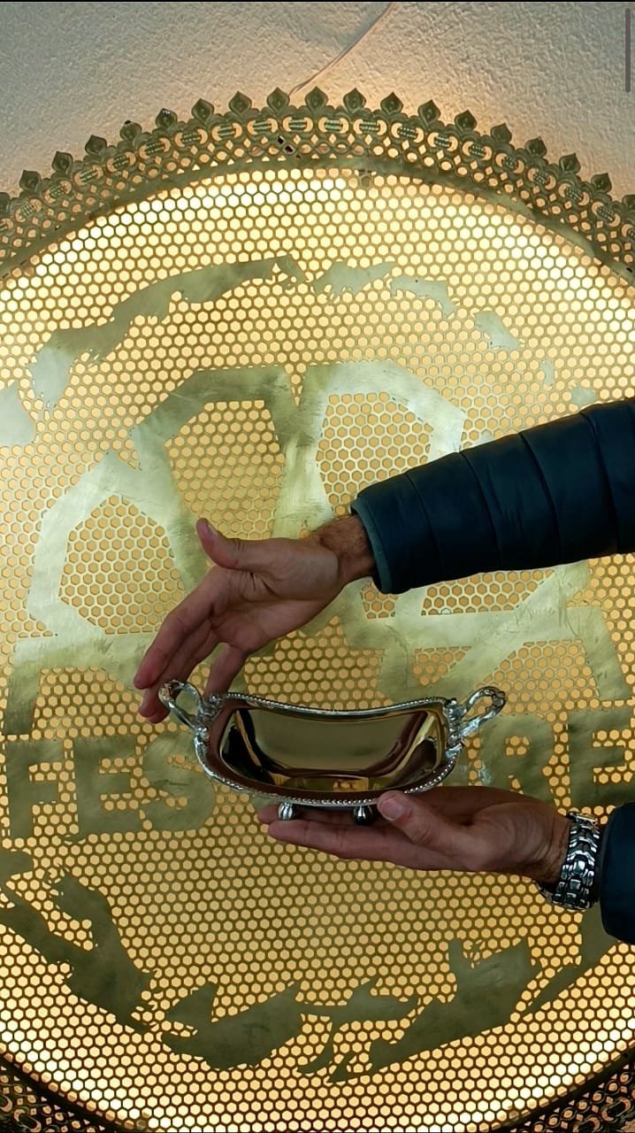 Élégant bol en métal avec poignées travaillées, parfait pour servir des sauces, fruits secs, dattes ou petites douceurs orientales.