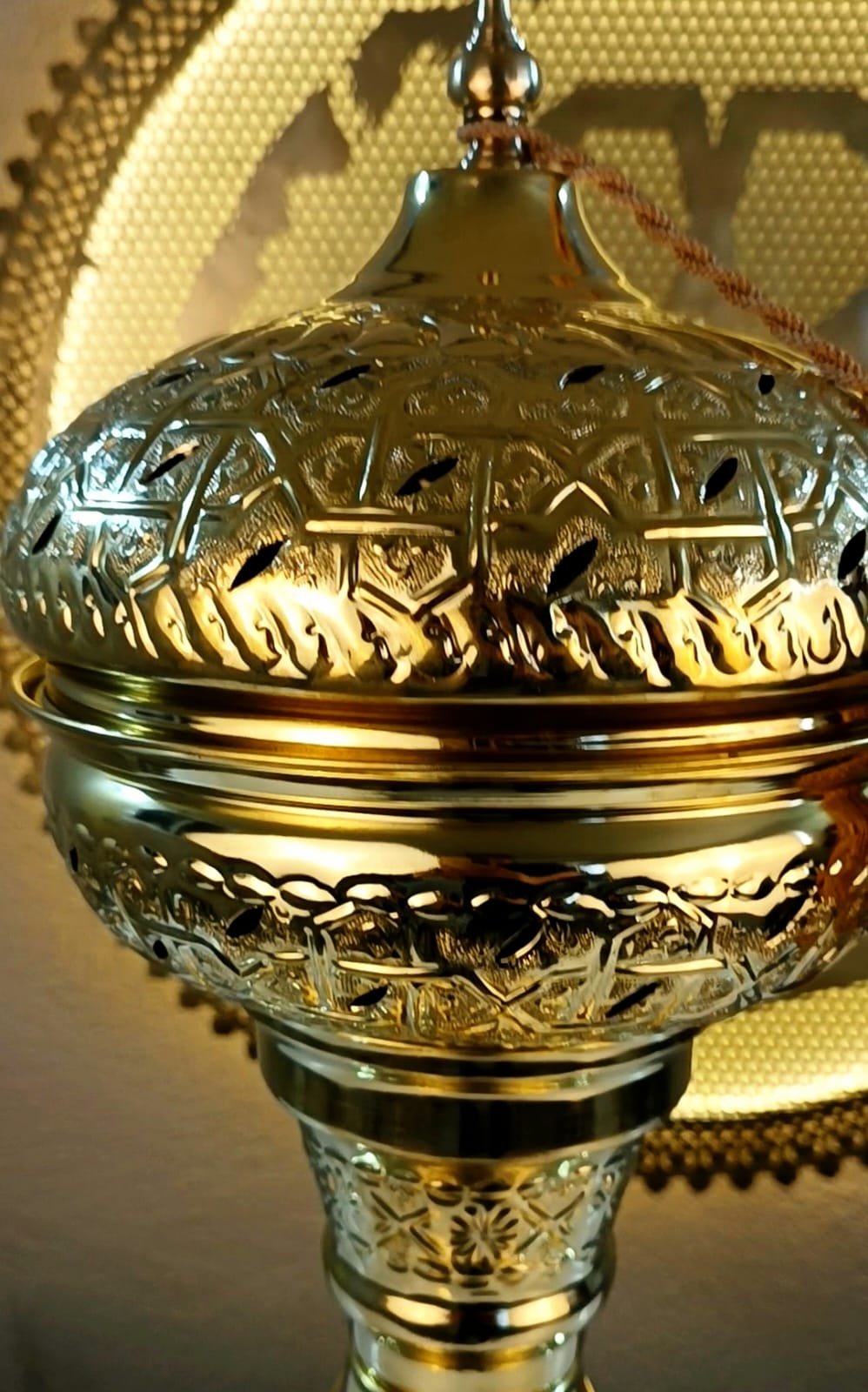 Une véritable œuvre d’art inspirée du riche patrimoine marocain, entièrement fabriquée à la main en cuivre avec une finition dorée élégante.