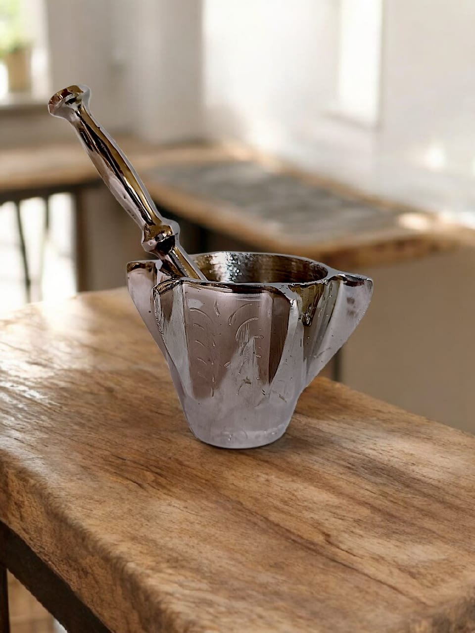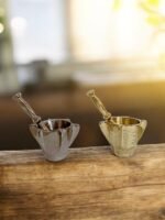 Petit mortier élégant, idéal pour piler le safran, la gomme arabique, les épices fines et autres ingrédients précieux. Son format compact permet un broyage précis, tandis que sa finition soignée apporte une touche raffinée à la cuisine ou à l’espace de présentation.