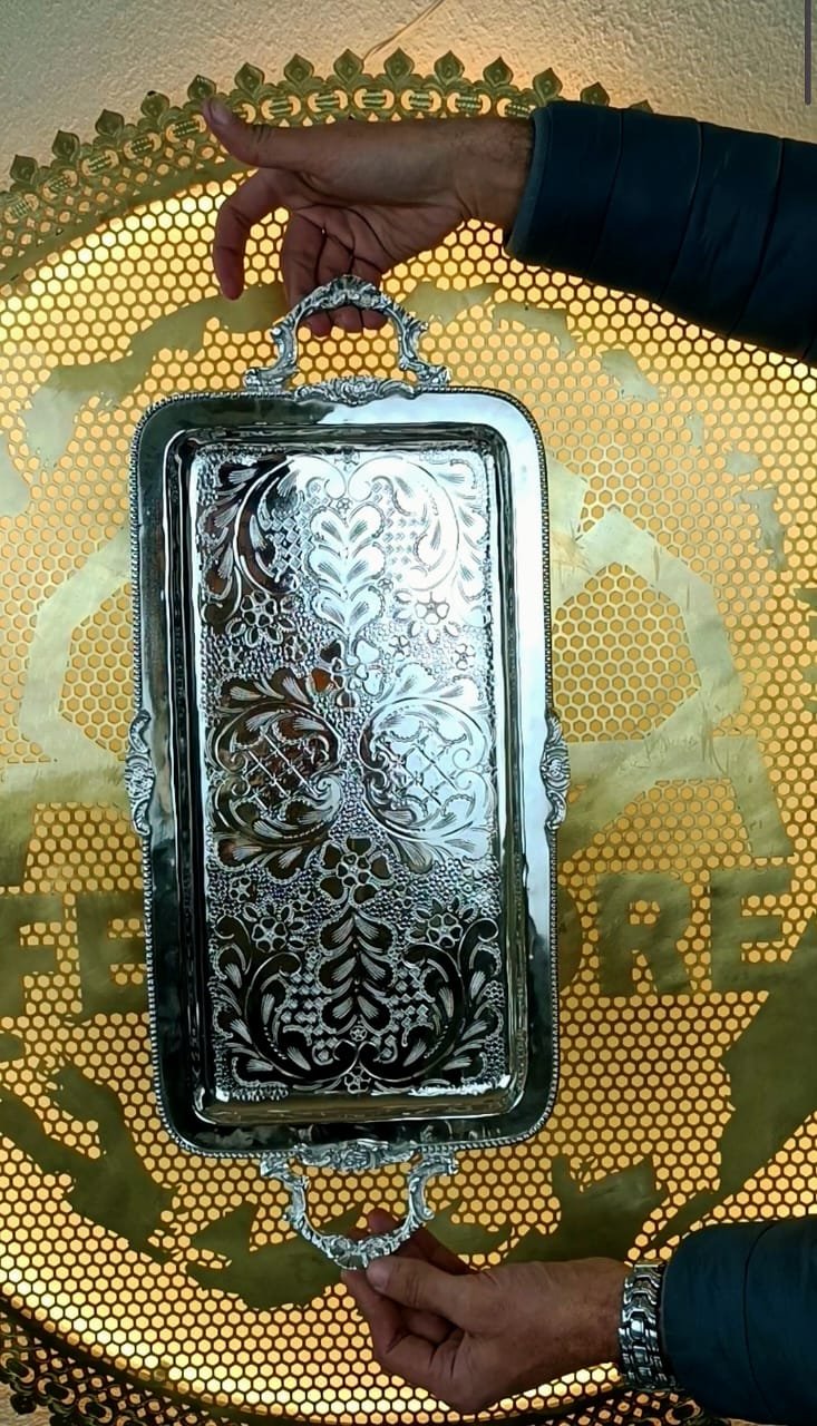 Fabriqué avec un design travaillé et des motifs traditionnels délicatement gravés, ce plateau allie charme oriental et praticité.