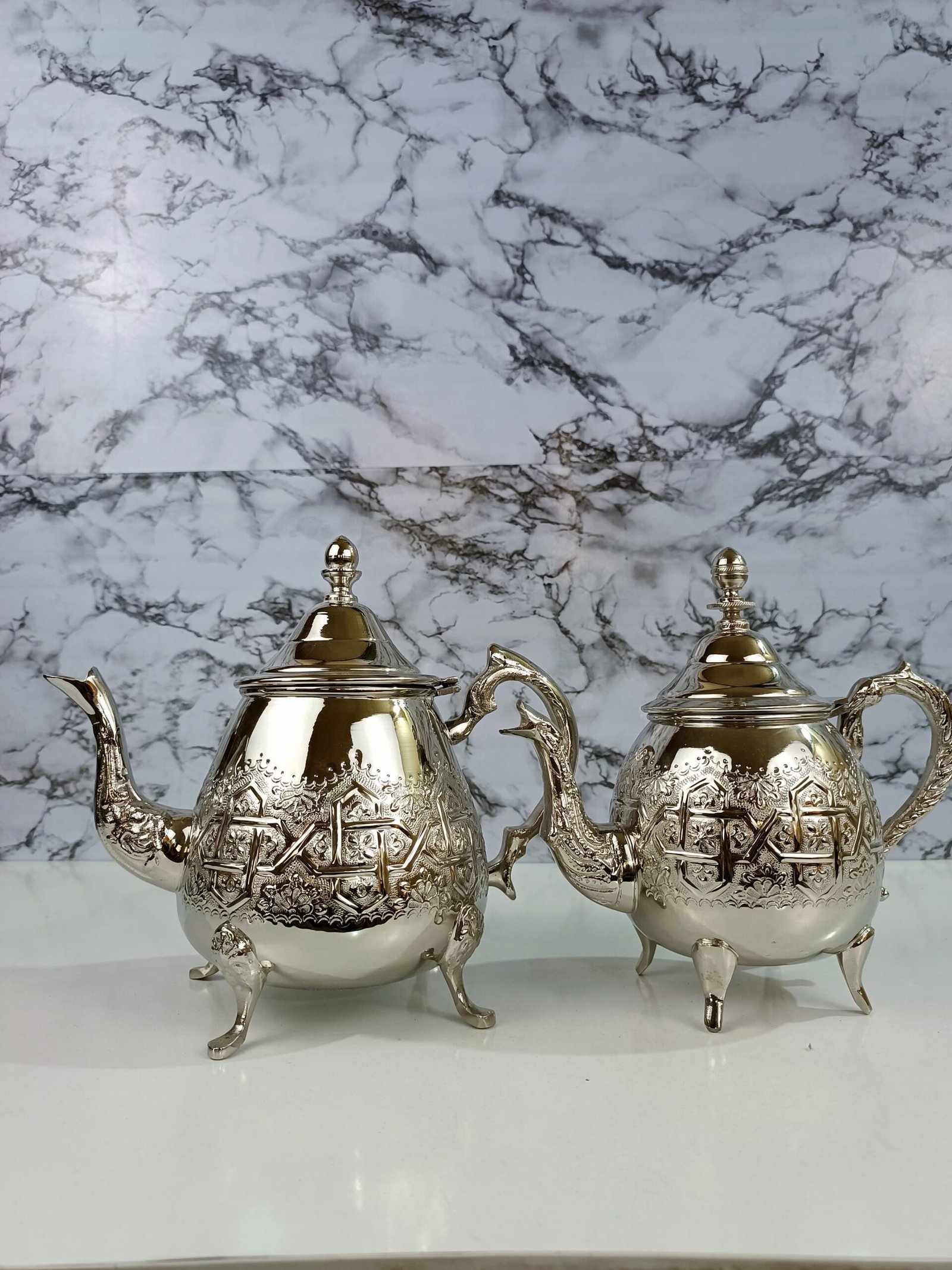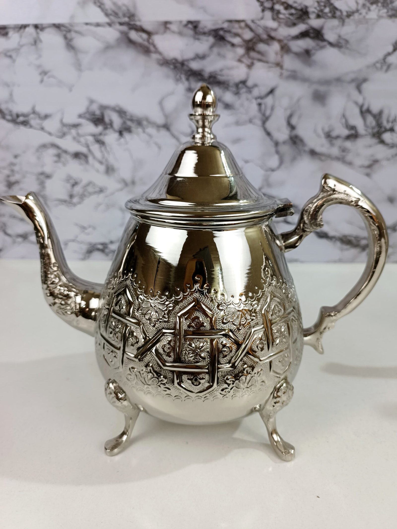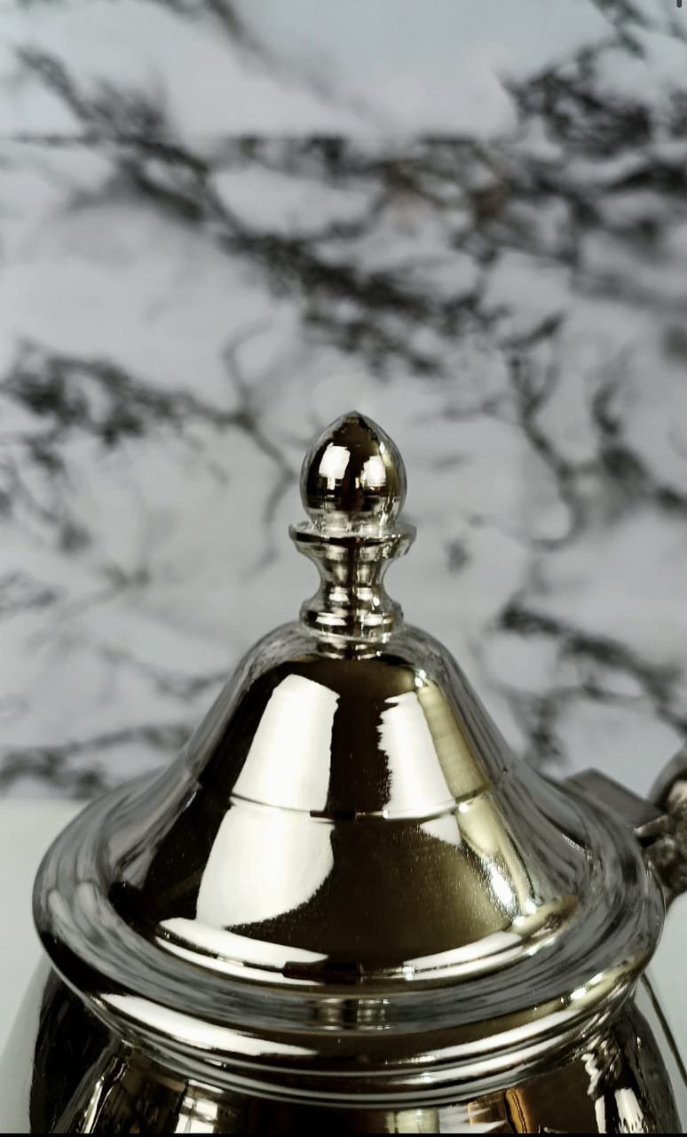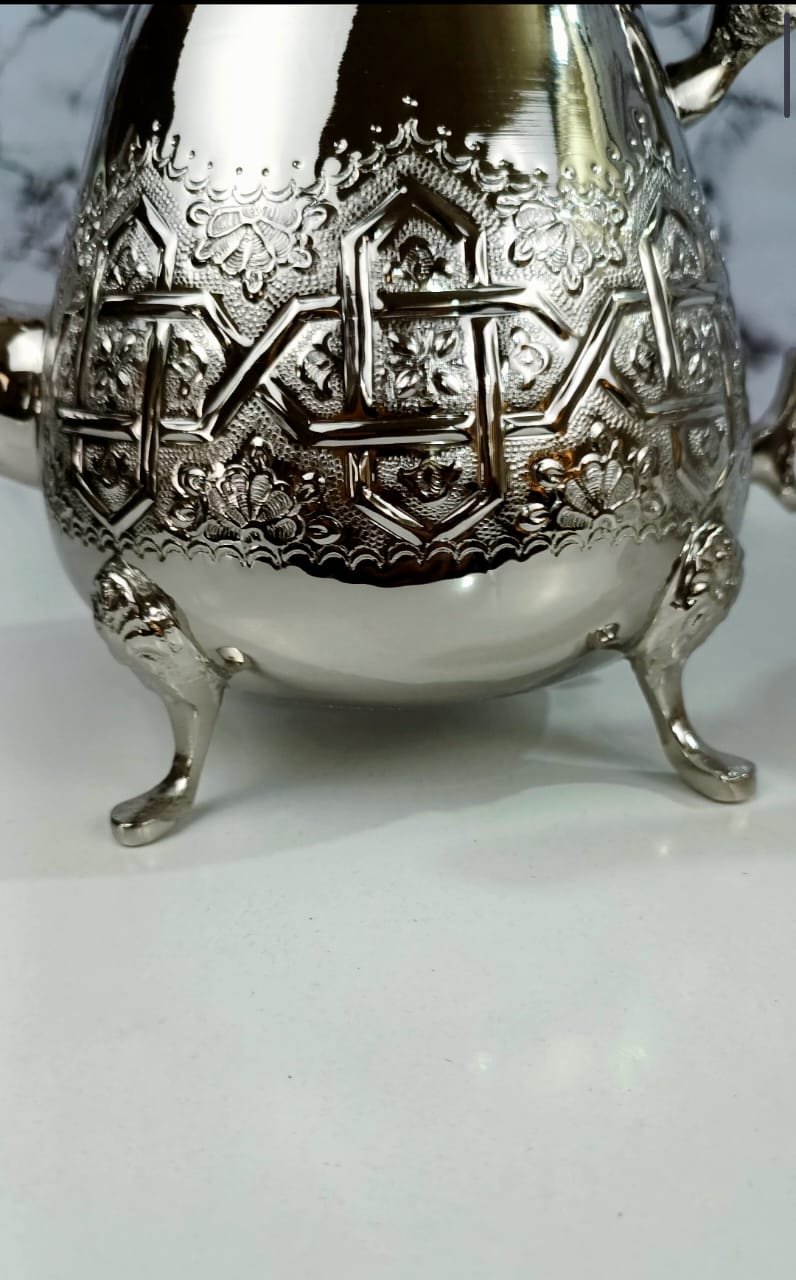 Avec ses lignes épurées et sa gravure parfaitement symétrique, Qaleb incarne l’harmonie entre équilibre et finesse. Sa structure arrondie et ses pieds gracieux lui confèrent une allure noble, tandis que ses motifs géométriques reflètent la richesse du patrimoine artisanal marocain. Un objet d’exception pensé pour sublimer vos moments de thé avec prestige.