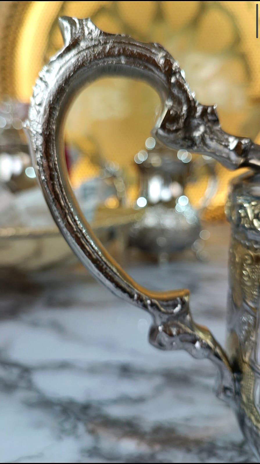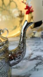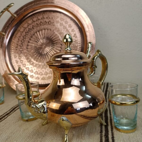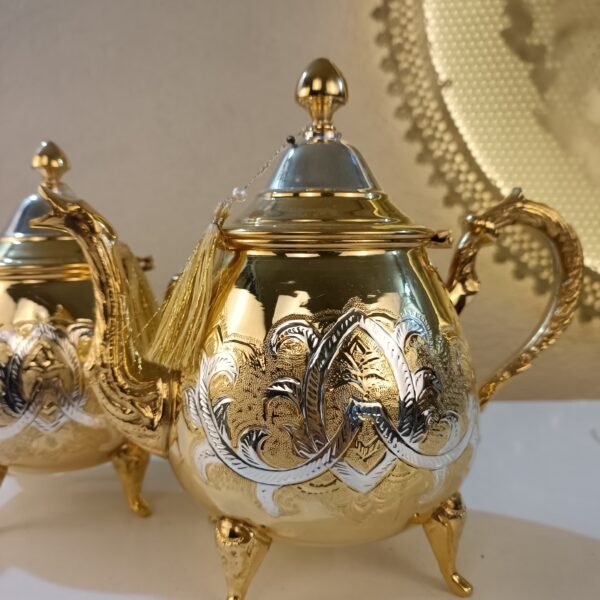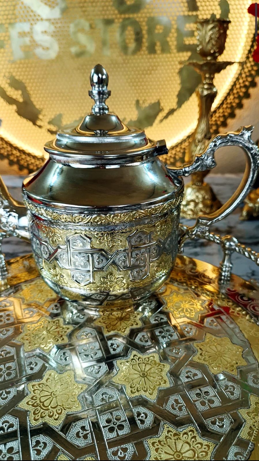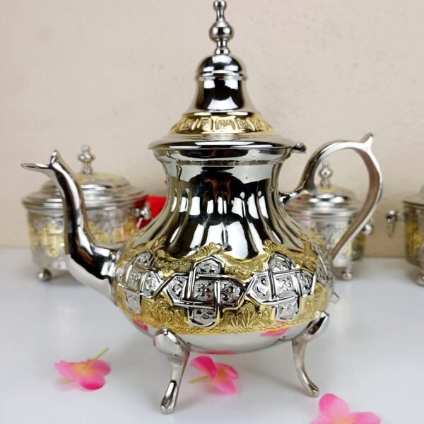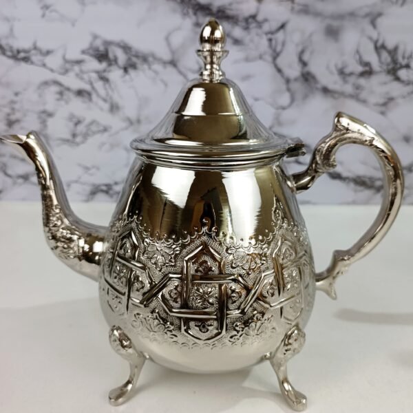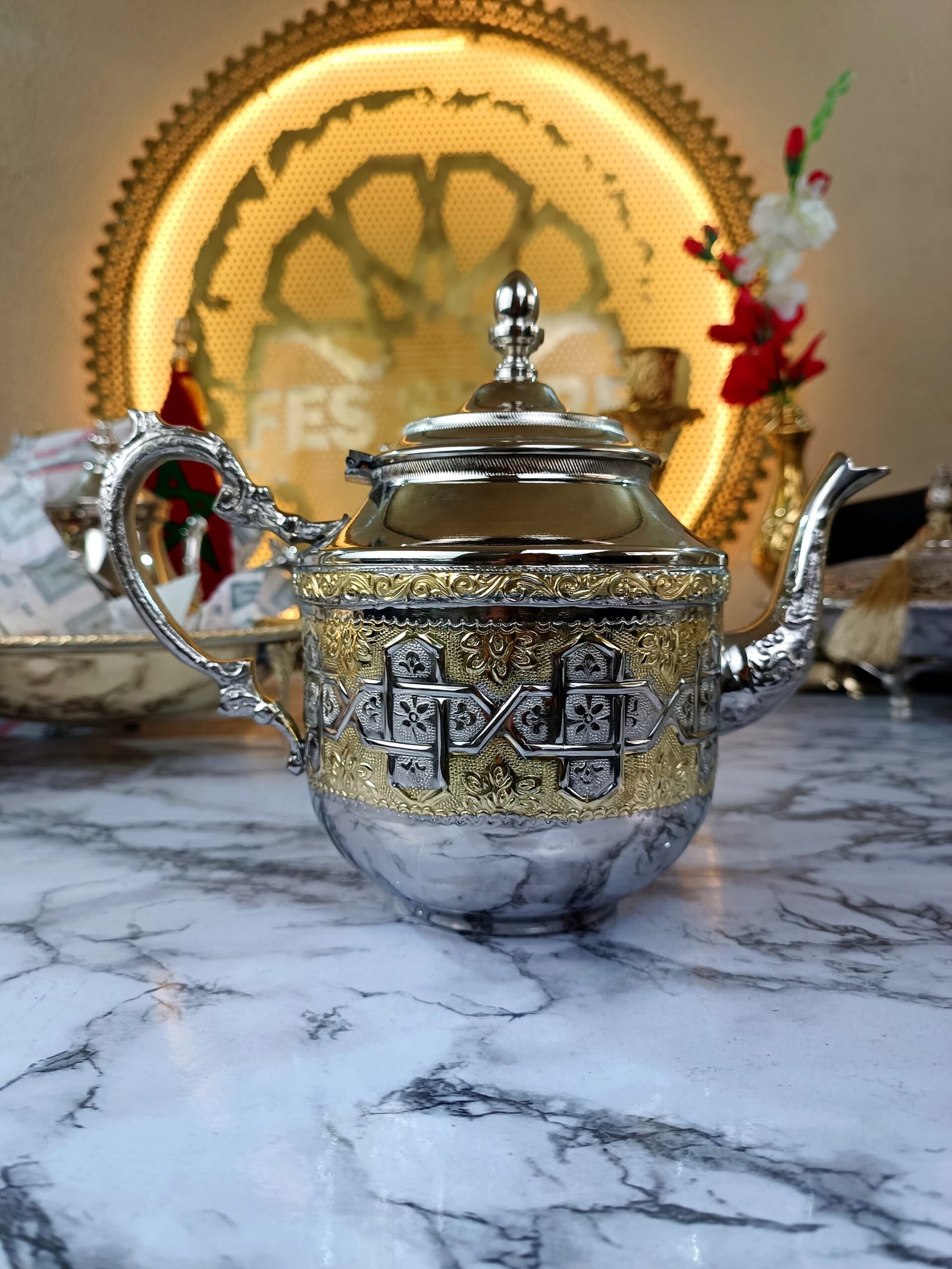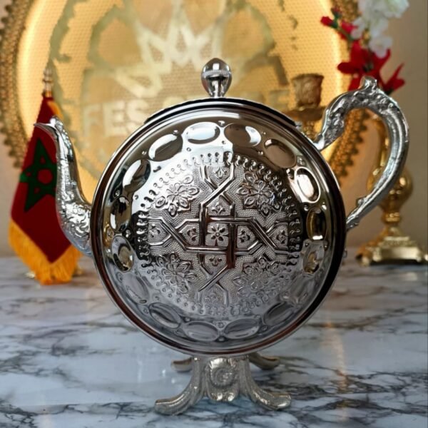 Pièce maîtresse de l’art de recevoir, Saousan incarne la finesse marocaine dans toute sa splendeur. Son corps délicatement martelé, sa silhouette raffinée et sa poignée élégante font de ce théière bien plus qu’un simple objet : un hommage vivant aux traditions d’hospitalité. Chaque détail reflète un savoir-faire transmis avec amour, pour offrir un moment de thé empreint de grâce et d’authenticité.