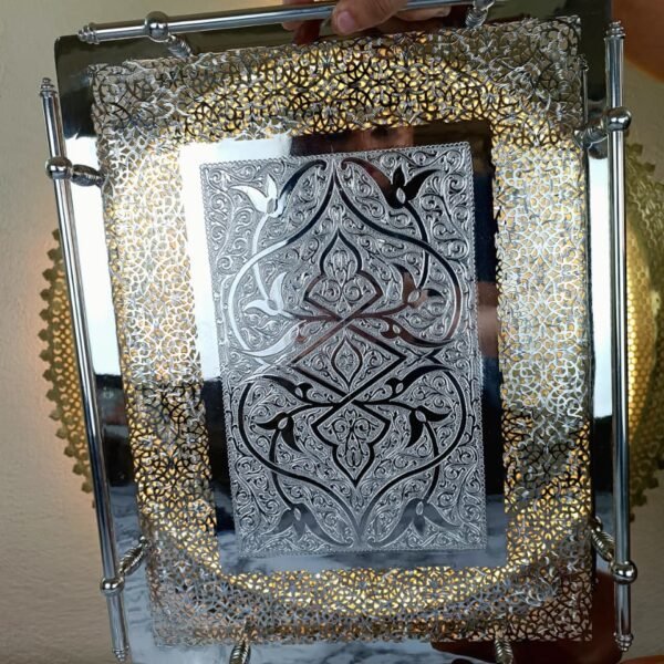 Sniya marocaine argentée – Forme ronde et motif « dama »