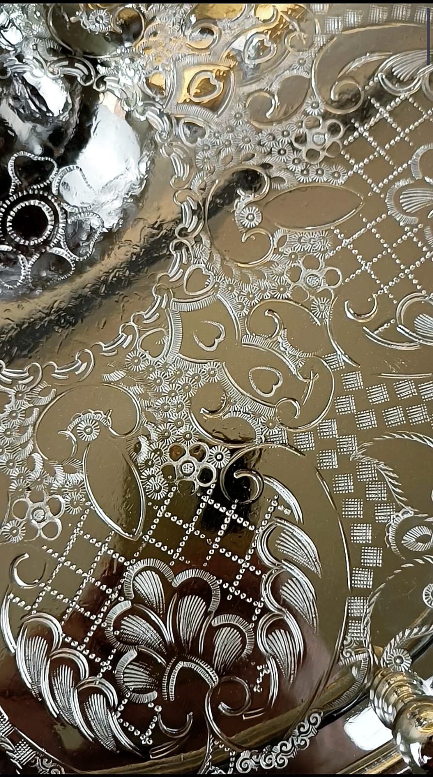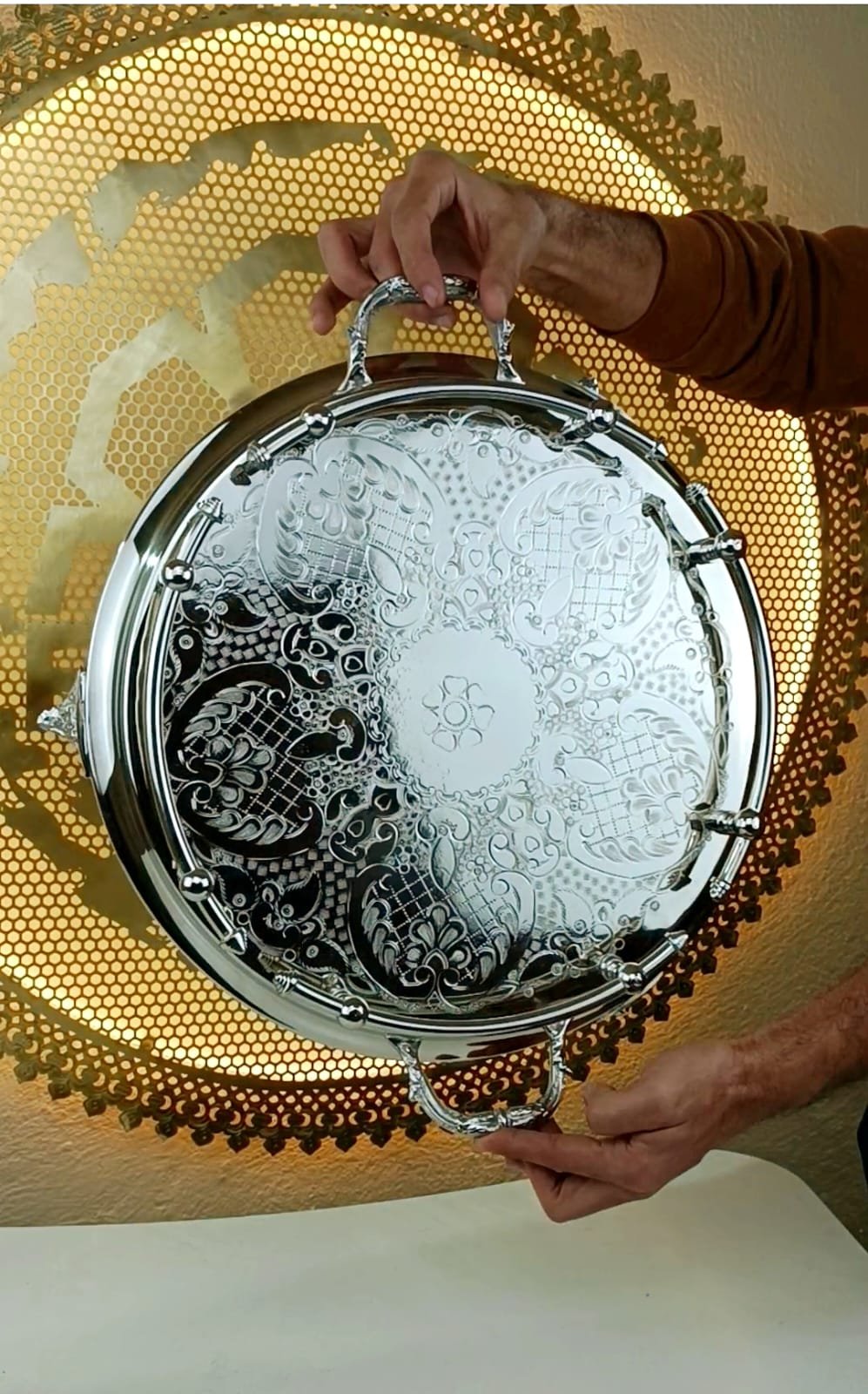 Sniya marocaine argentée – Forme ronde et motif « Raïd »
