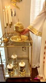 Fabriqué en cuivre poli de haute qualité, cet ensemble allie authenticité artisanale et élégance intemporelle, idéal pour vos cérémonies ou comme décoration prestigieuse.