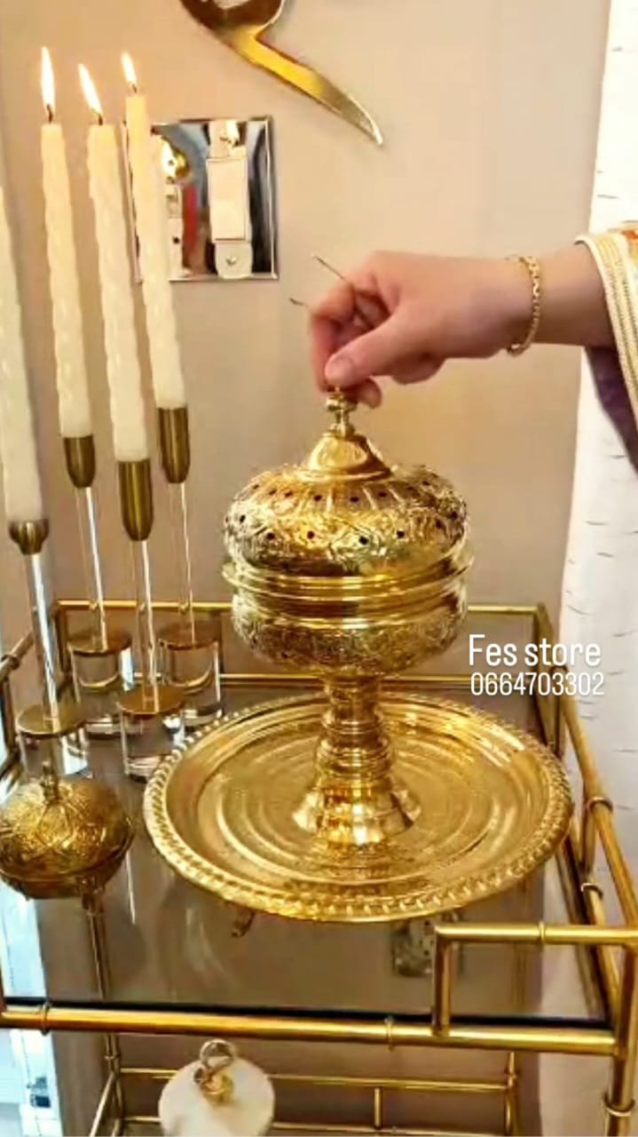 Ensemble raffiné en cuivre marocain, travaillé avec soin pour sublimer vos moments de réception et vos rituels parfumés.